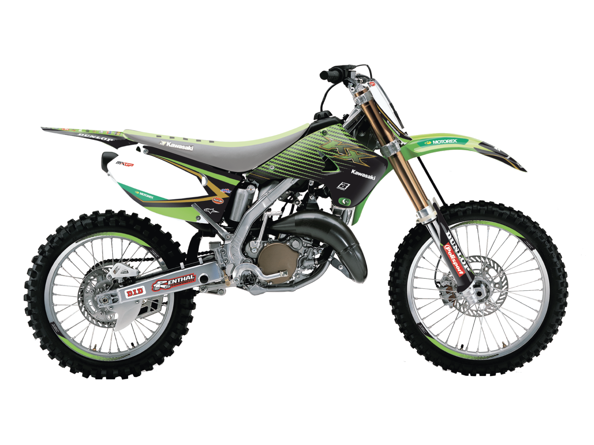 • Grafik-Kits beinhalten Kühlerabdeckungen, Frontkotflügel, hinten Kotflügel, Airbox, Gabelprotektoren und Schwingarm Grafiken